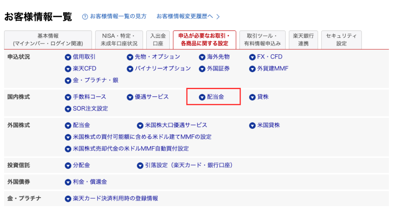 ここでは、楽天証券で配当金を自動出金する前に